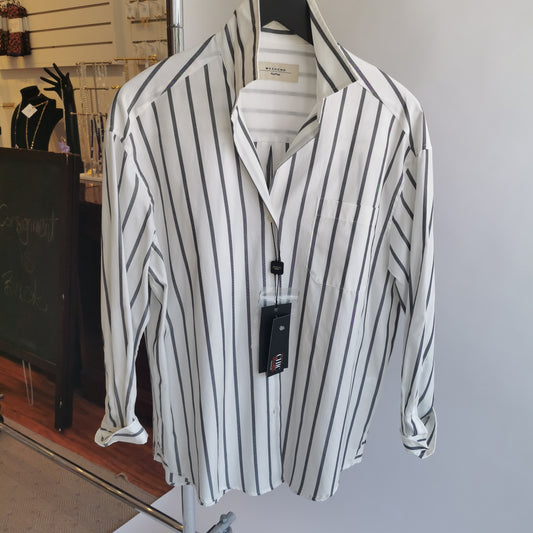 25-19 Max Mara White/Blk Stripe Blouse 6