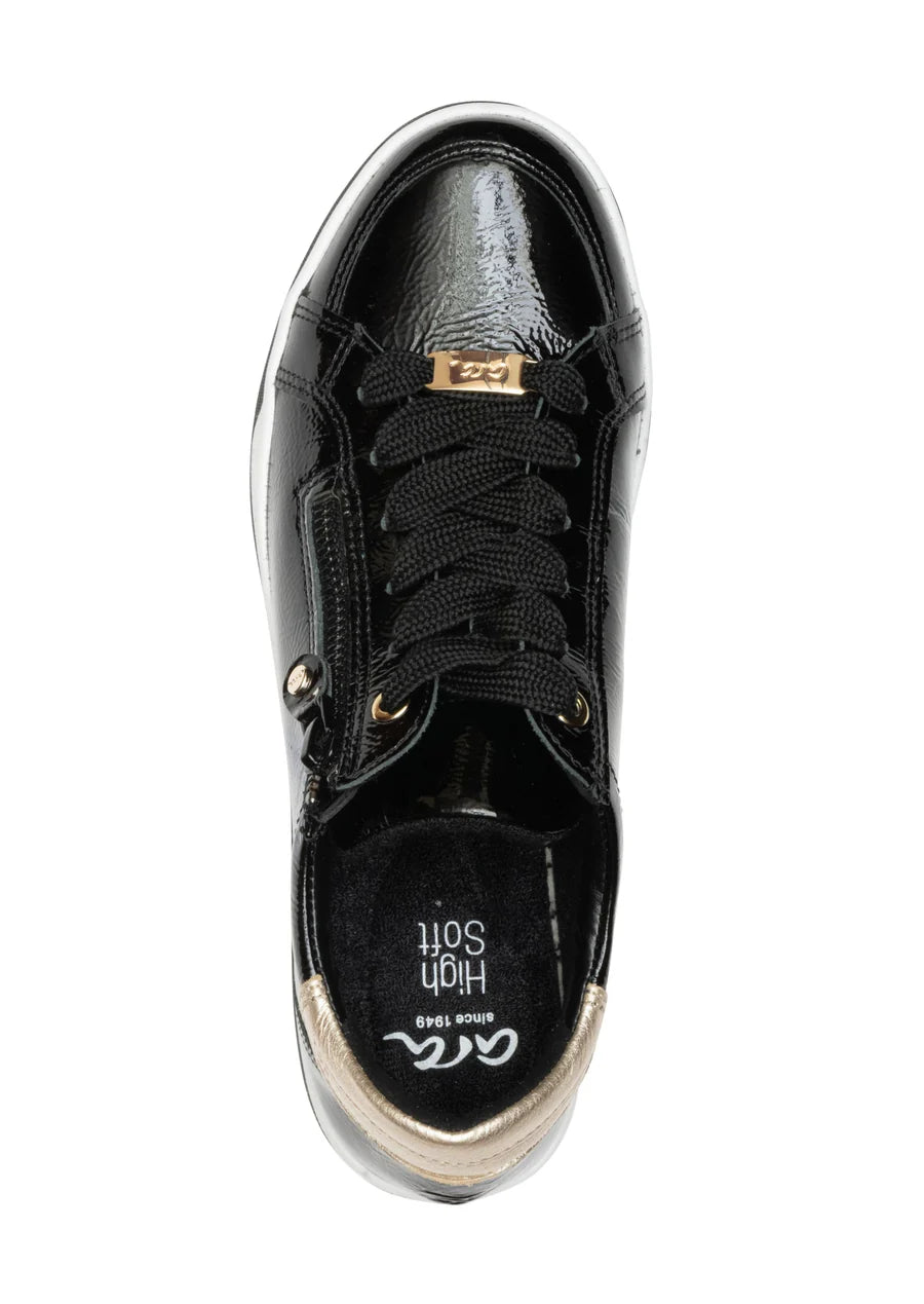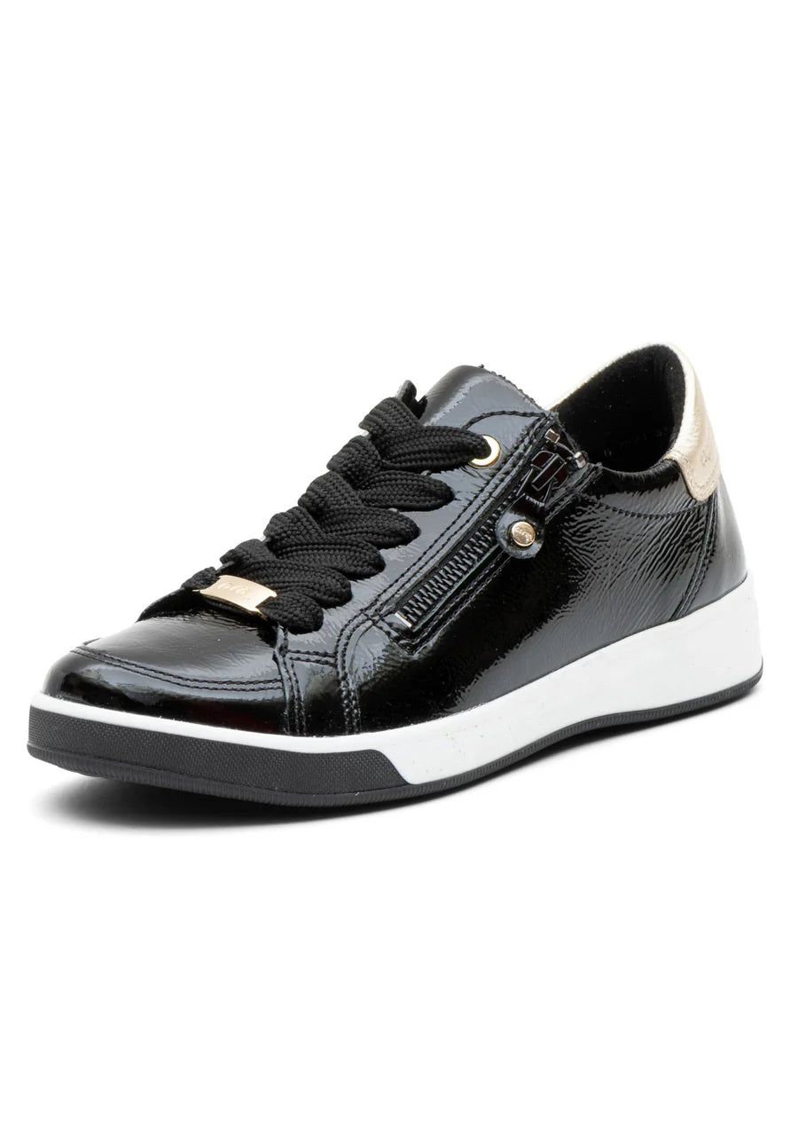 This Rei patent leather sneaker from Ara comes with an innovative, bamboo-based lining that is skin friendly. and breathable. A side zipper makes for easy slip on. The insole is cushioned and has arch support.